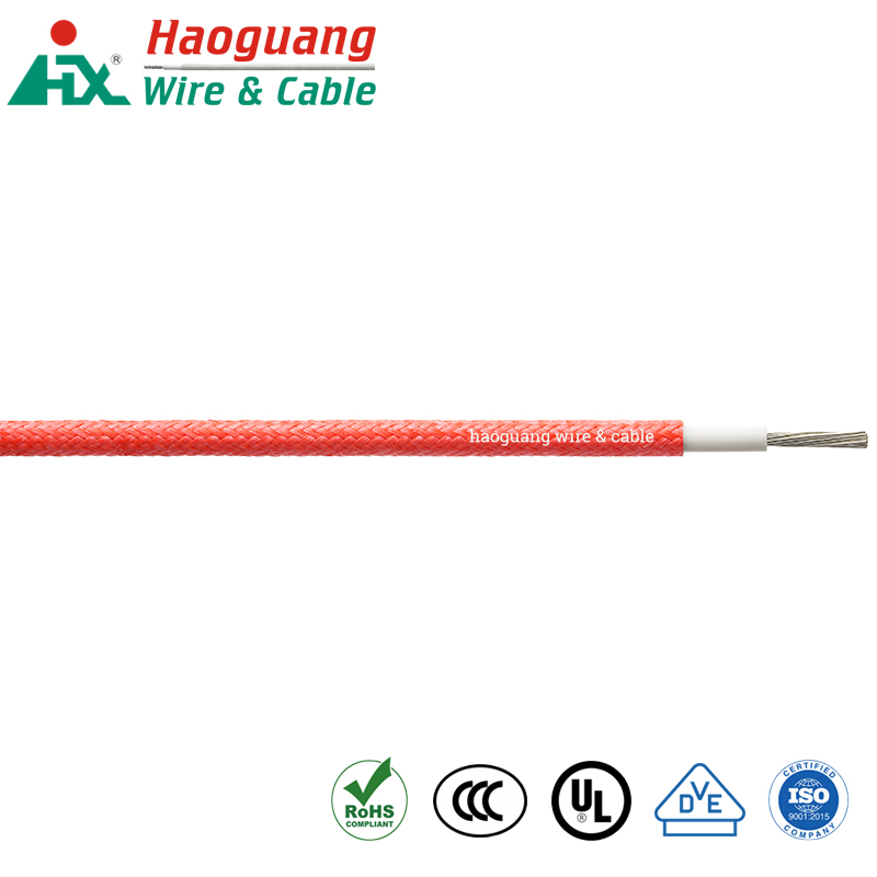 Haoguang 3C 60245IEC 03(YG) Silicone Rubber Braided Fiberglass Single Core Cable has good capacities of high voltage receivers, it is suitable for high temperature environment, such as electrical household appliance, lightening electrical equipment. The braided fiberglass jacket provide increased protection against hot surfaces, offering resistance to abrasion and cutting. flexible performance and RoHs compliance. Welcome for inquiry.